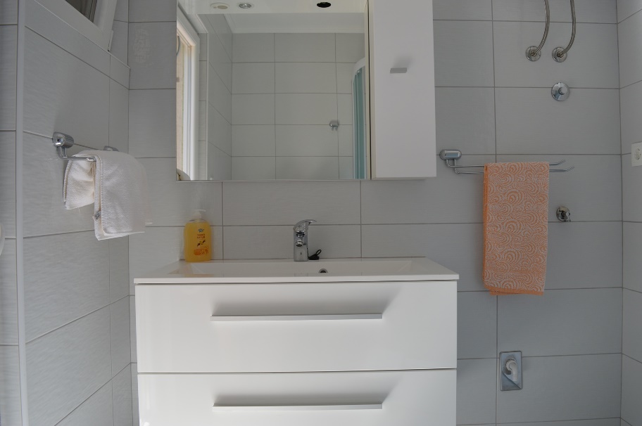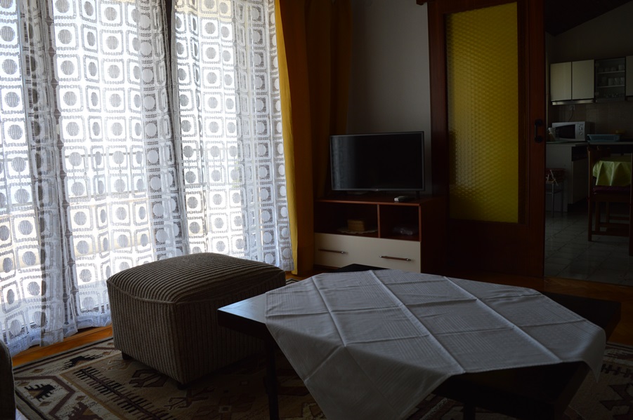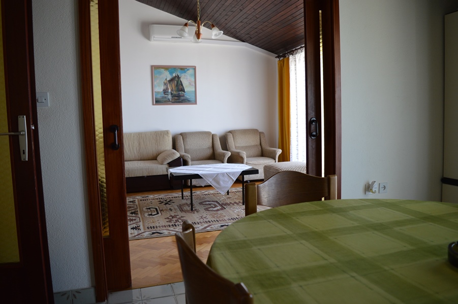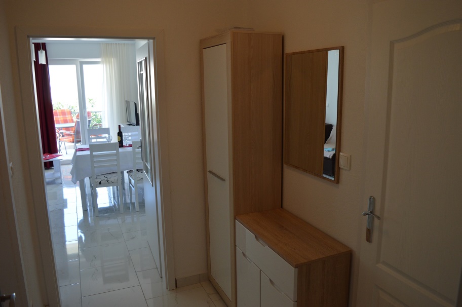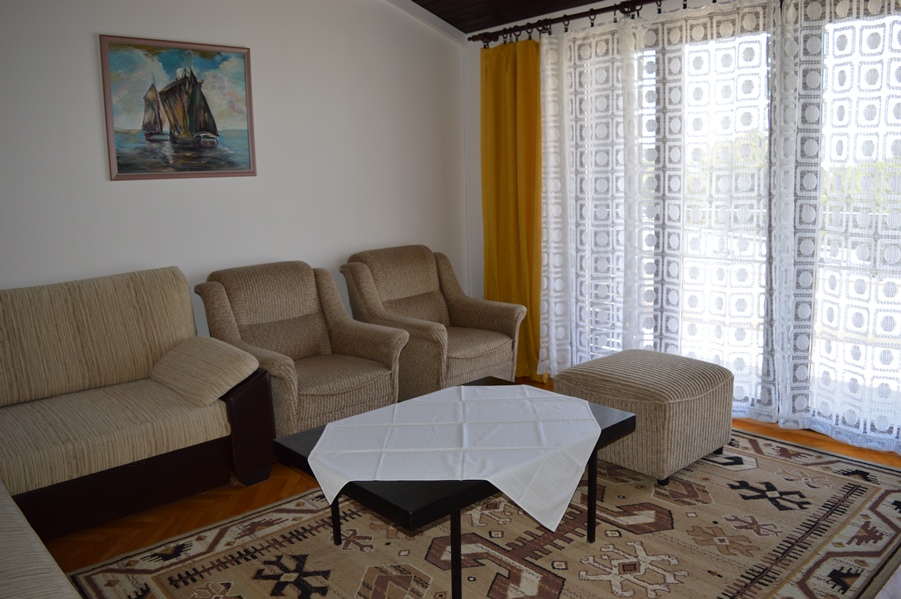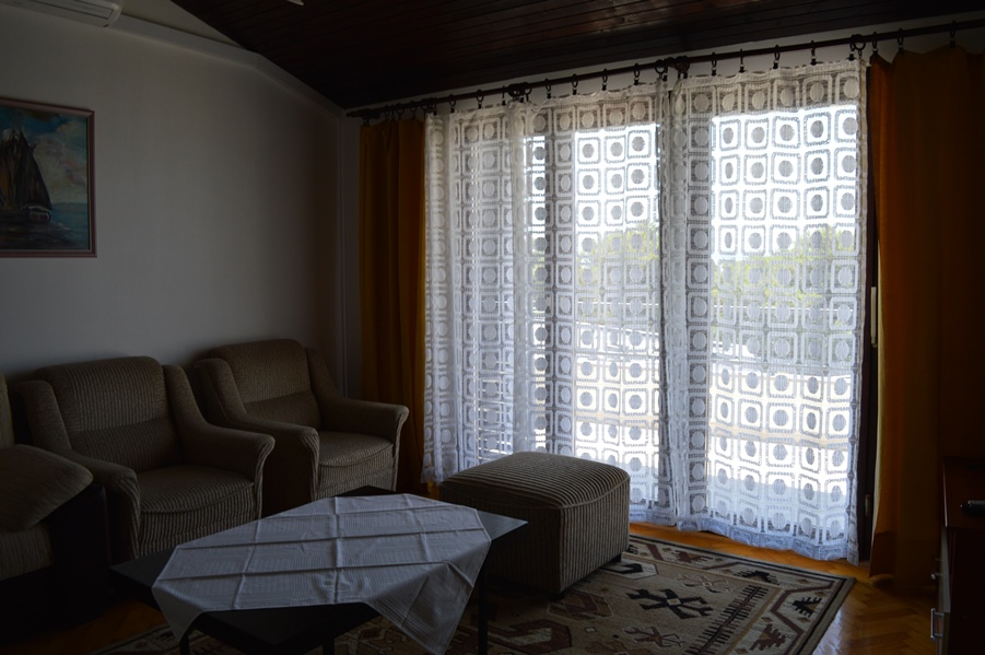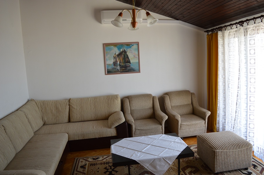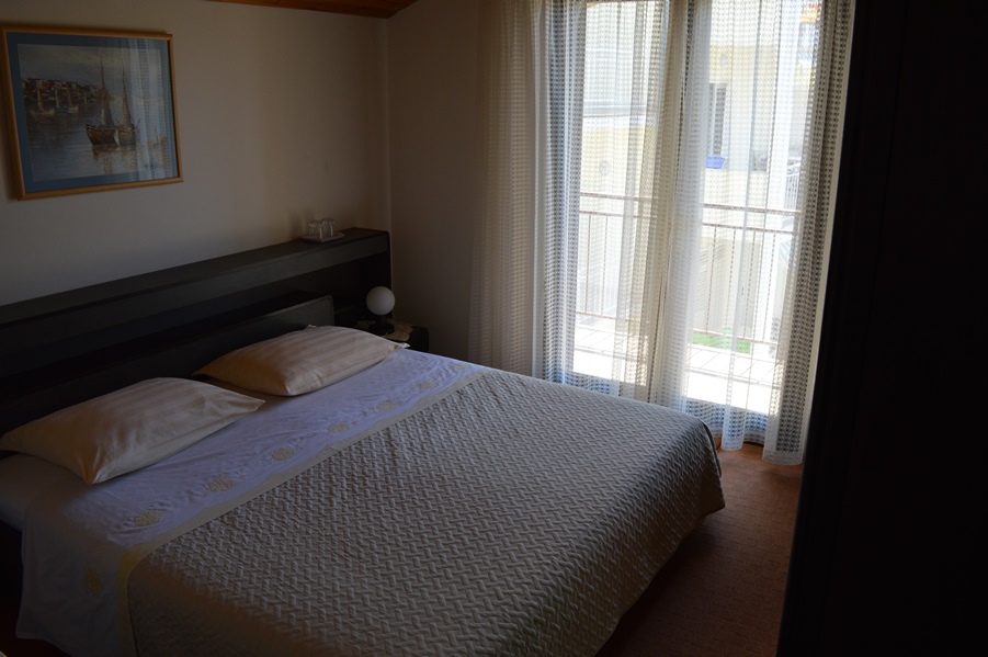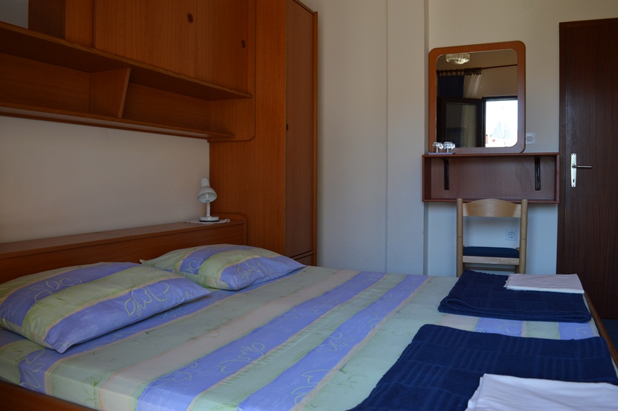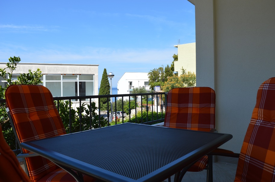 The second slideshow shows the pictures of the small apartment, which can accept 2+2 person. It is our newest apartment and it offers everything you need for your summer vacation. It has one room with big bed and its own balcony, elegant bathroom, fully equiped kitchen with with washing machine, big living room with a couch that can be extended and can serve as bed for 2 more people, and finally with big balcony with seaview where you can sunbathe or enjoy in evenings. The apartment is airconditioned, has a satallite tv and wifi connection which is free for your usage.
